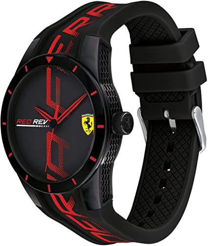 Ferrari Men's Red Rev Quartz Plastic and Silicone Strap Casual Watch, Color: Black (Model: 0830614)